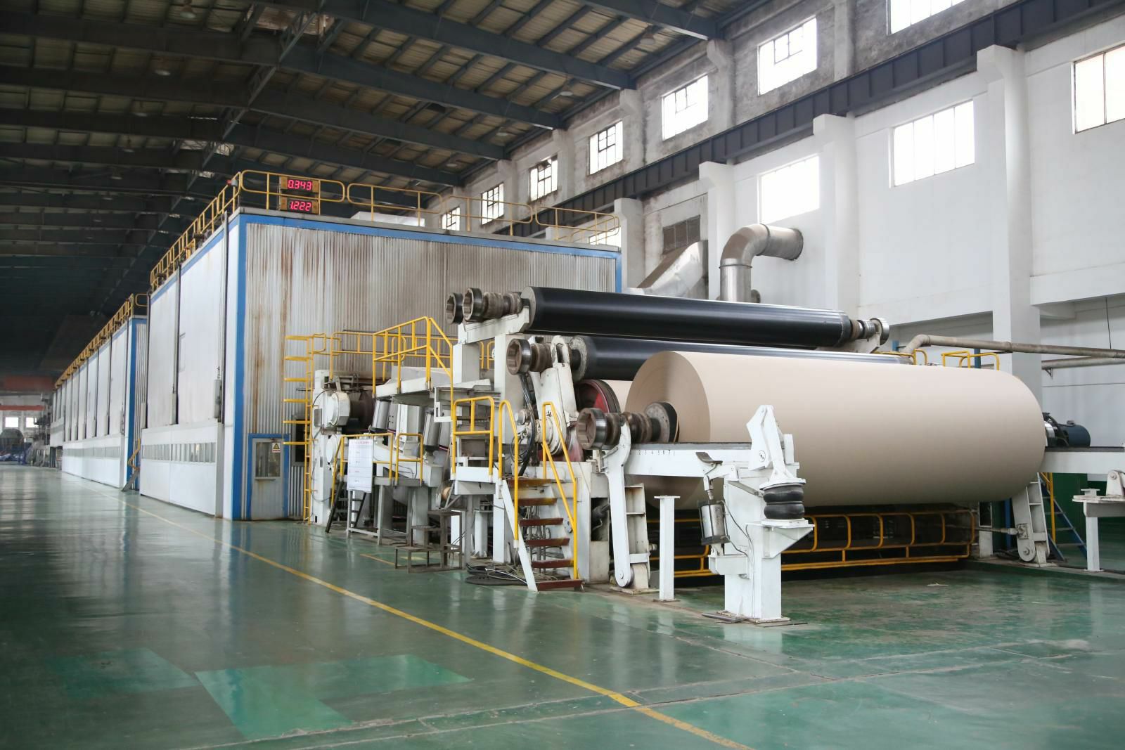 PM5造纸生产线,纸机是美卓(芬兰)制造的先进造纸设备,幅宽6.6米,设计车速1200米/分,目前运行最高车速已达1250米/分。主要生产90-220克的挂面箱板纸,年产量45万吨,带领星空官网·网站-星空(中国)开启了包装纸生产的新纪元。